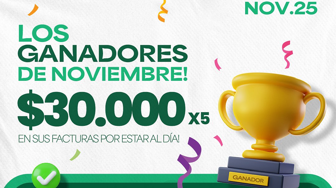 La Cooperativa continua premiando a los asociados y asociadas que mantienen sus facturas al día, con un sorteo mensual que beneficia a 5 asociados/as con una bonificación de $ 30.000 en su próxima factura.
