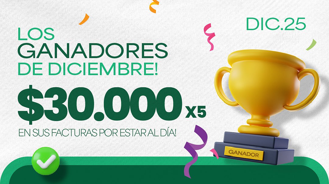 La Cooperativa continua premiando a los asociados y asociadas que mantienen sus facturas al día, con un sorteo mensual que beneficia a 5 asociados/as con una bonificación de $ 30.000 en su próxima factura.